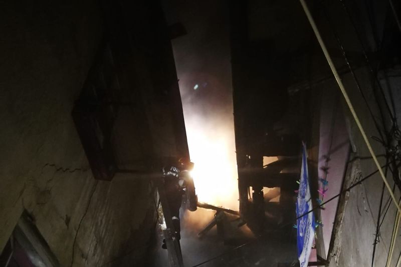 incendiul se manifesta pe o suprafață de aproximativ 50 mp, la acoperisul imobilului, cu posibilitate de extindere la casele învecinate