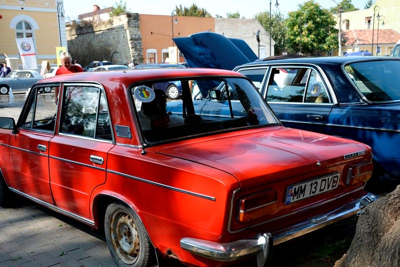avem aproximativ 25 de mașini dintr-un total înscris de 56. Avem diverse tipuiri de mașini, printre care și mărci autohtone, începând cu Dacia 1100, Dacia 1300, ani de fabricație 1968, 1968. Avem Skoda a domnului Tișa, pentru care noi am făcut un eveniment mai special, Avem Lada, partenerul nostru din Rusia. Avem și mărci precum Mercedes, BMW, Afla Romeo sau Ford