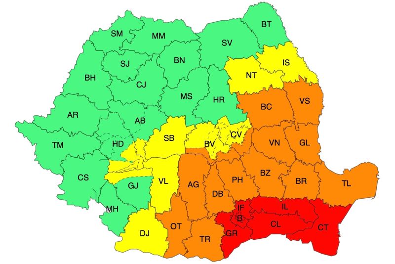 Zone afectate: județele Constanța, Călărași, Ialomița, Giurgiu, Ilfov și în municipiul București