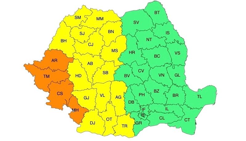 Zone afectate: județele Arad, Timiș, Caraș-Severin și Mehedinți