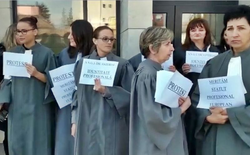 Aproximavtiv 50 de grefieri au protestat în fața Palatului de Justiție din Bistrița! Alți 11 au participat la mitingul din Capitală