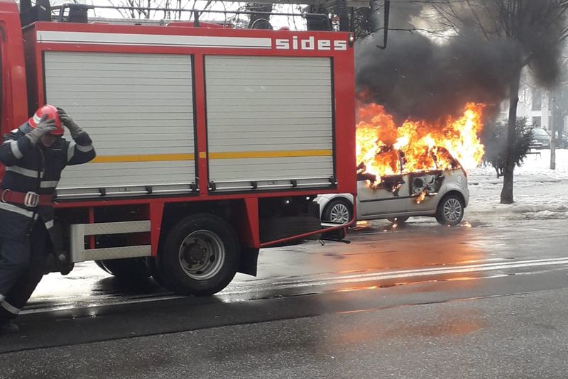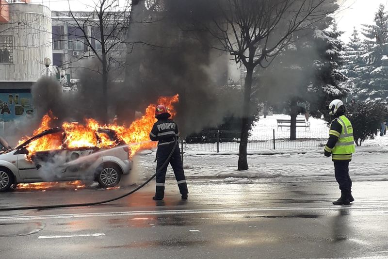 Incendiul a izbucnit la un autoturism marca Ford, care în câteva minute a fost cuprins integral de flăcări. Mașina era oprită în stația de autobuz de pe Bulevardul Decebal din Bistrița.La fața locului a intervenit o autospecială de lucru cu apă și spumă din cadrul Inspectoratului Județean pentru Situații de Urgență Bistrița-Năsăud și un echipaj SMURD de prim ajutor.Circulația în zonă a fost oprită, iar pompierii au reușit să stingă flăcările în scurt timp și au efectuat cercetări pentru a stabili cauza care a dus la producerea incendiului.