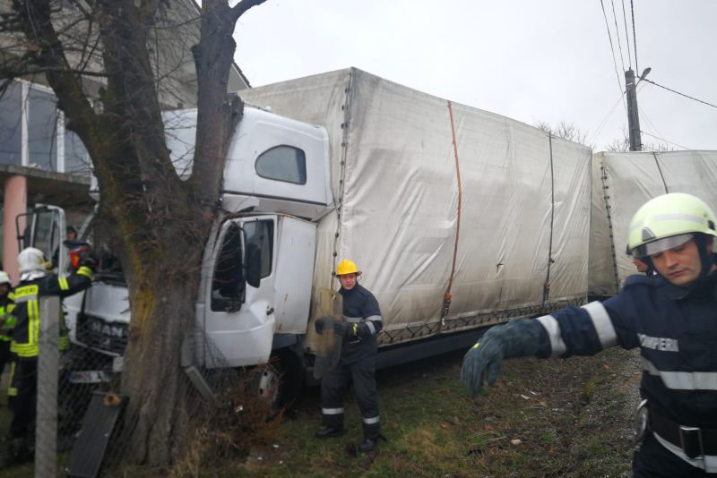 Accidentul s-a produs marți dimineața, pe DJ 151, pe raza localității Blăjenii de Sus din Bistrița-Năsăud. Șoferul unui autotren a pierdut controlul asupra direcției de deplasare și a intrat în coliziune cu un copac.În urma impactului, șoferul a rămas blocat în cabina camionului, pentru extragerea victimei fiind necesară intervenția unui echipaj de descarcerare.