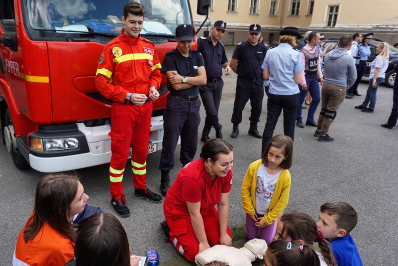 Jandarmii, poliţiştii, pompierii, reprezentanţii Instituţiei Prefectului, ai Centrului Antidrog şi cei ai Serviciului Anticorupţie Bistriţa au fost prezenţi miercuri, în mijlocul a aproximativ 500 de elevi şi profesori de la Colegiul Naţional Liviu Rebreanu din municipiul Bistriţa.