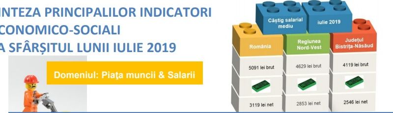 , arată DRS Bistrița-Năsăud.Potrivit datelor statistice, cei mai mulți angajați din județ muncesc în servicii (35.902) și în industrie și construcții (32.877), în timp ce doar 2.120 de persoane sunt angajate în agricultură, silvicultură și pescuit.În aceeași lună, iulie 2019, câştigul salarial mediu brut pe judeţ a fost de 4.119 lei, cu 1,7% mai mare comparativ cu luna precedentă și cu 17,8% mai mare față de luna corespunzătoare a anului trecut. În ceea ce privește câştigul salarial mediu net înregistrat la nivelul judeţului, acesta a fost de 2.546 lei cu 2,0% mai mare faţă de luna anterioară şi cu 20,5% peste nivelul lunii corespunzătoare din anul precedent.