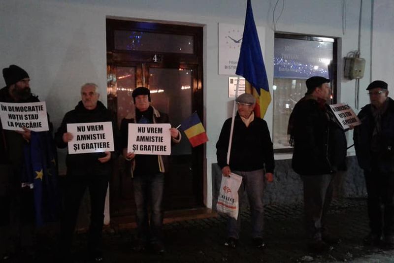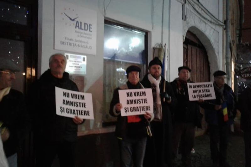 Câțiva bistrițeni au lăsat la o parte pregătirile pentru sărbătorile de iarnă și au ales să iasă în stradă pentru a protesta față de o posibilă ordonanță privind amnistia și grațierea. Sediile formațiunilor politice ALDE și PSD din municipiul Bistrița au fost locul în care protestatarii și-au manifestat nemulțumirile.