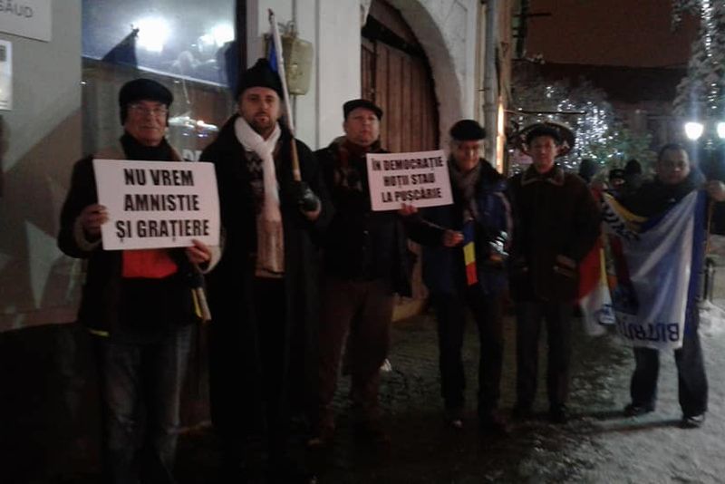 Câțiva bistrițeni au protestat împotriva unei posibile ordonanțe privind amnistia și grațierea (FOTO)