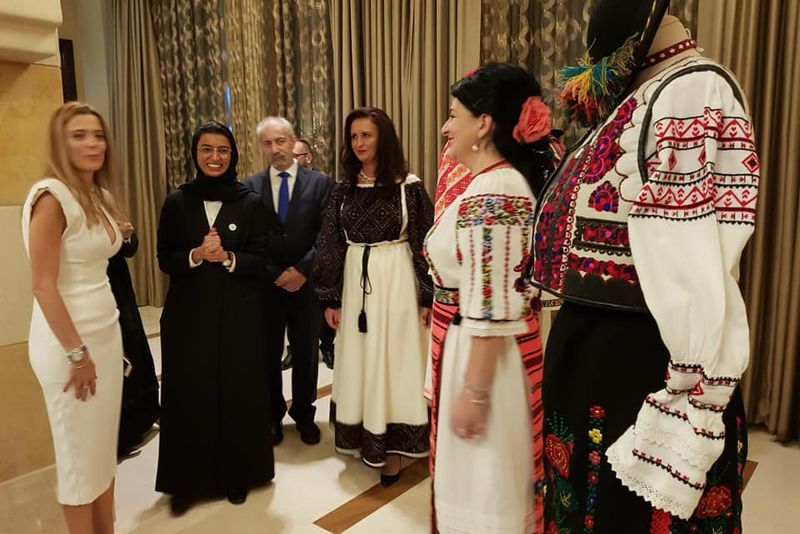 Personalități din viața culturală, politică și artistică din Emiratele Arabe Unite și România, membri ai corpului diplomatic și ai comunității românești au luat parte la prezentarea proiectului „De la Tradiție la Modernism/Inovație”, în cadrul căruia a fost promovat costumul popular românesc ca parte a patrimoniului cultural și ca sursă de inspirație pentru designerii moderni. Evenimentul a inclus o expoziție de costume populare și accesorii, prezentări de modă și momente artistice.Români și emiratezi deopotrivă au admirat piese de port popular provenind din toate zonele țării, realizate integral manual de meșterii artizani Virginia Linul și Virginia-Maria Roș, originare din județul Bistrița-Năsăud, care au pus în valoare costumul tradițional românesc în întreaga lui splendoare și autenticitate.