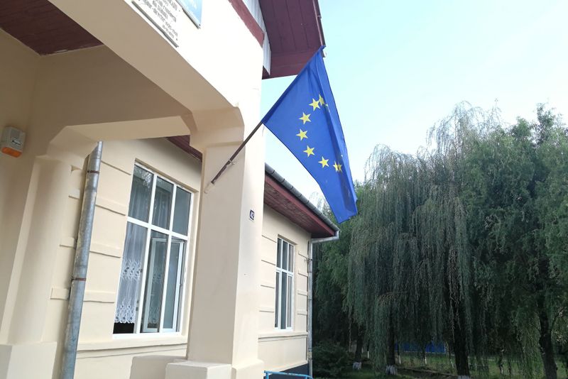 Până atunci, fâlfâie steagul european într-o școală primară fără apă curenta și canalizare în 2018, având alături o clădire părăsită, unde nu se mai întâmplă nimic!