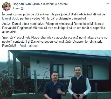 În urmă cu mai puțin de doi ani luam la pas județul Bistrița-Năsăud alături de Daniel Suciu pentru a vedea “din iarbă” problemele oamenilor! Astăzi, Daniel a fost nominalizat Viceprim-ministru al României și Ministru al Dezvoltării Regionale! Mă bucură tare mult faptul că un om tânăr și capabil a ajuns aici! Sper că Președintele Klaus Iohannis va accepta această nominalizare care nu poate fi contestată și Daniel va deveni cel mai tânăr Vicepremier din istoria României!
