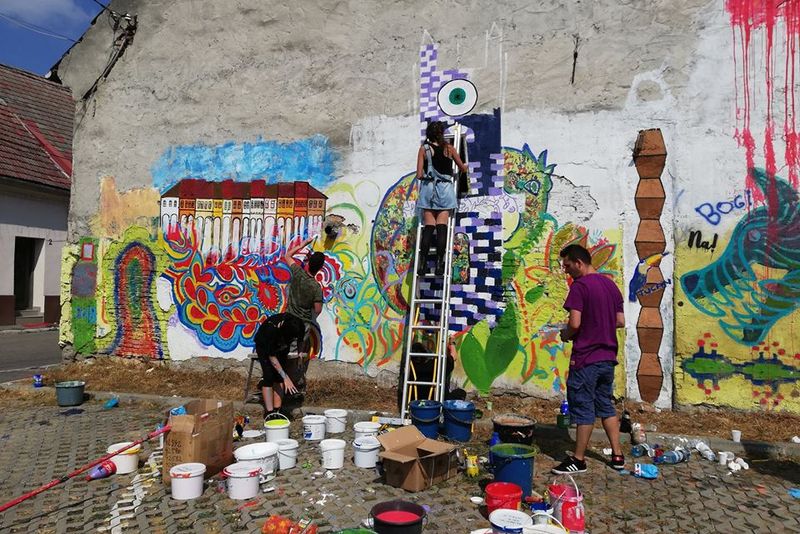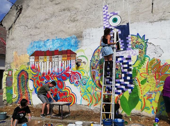 Pentru a fi siguri că desenele lor vor rămâne pe zidul clădirii timp îndelungat, elevii au folosit culori acrilice concepute special pentru a putea fi utilizate în exterior.Zidul clădirii care a primit o nouă înfățișare este situat în zona centrală a orașului, în apropierea parcării de pe strada Lupeni.FOTO: Consiliul Local al Tinerilor Bistrița