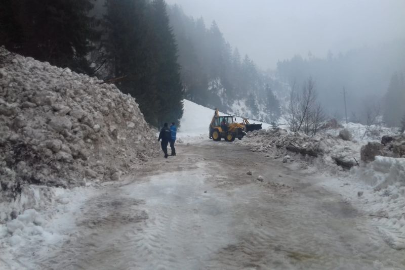 La această oră se lucrează la degajarea drumului cu un buldoexcavator, iar la final se va acționa cu un autogreder pentru curățarea drumului de zăpadă. Acest fenoment s-a produs din cauza temperaturilor ridicate din ultima perioadă, iar specialiștii spun că astfel de situații ar putea să mai apară și în zilele următoare, pentru că potrivit prognozei meteorologilor, vremea se va încălzi.Acest drum comunal este singura cale de acces spre localitatea Valea Vinului în care trăiesc circa 200 de persoane.Localitățile Rodna și Valea Vinului se află la poalele Munţilor Rodnei.