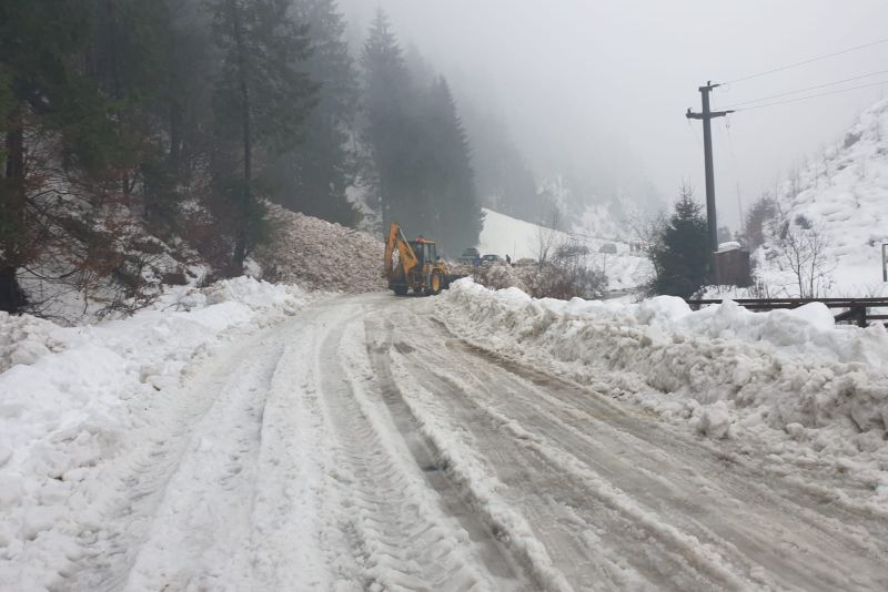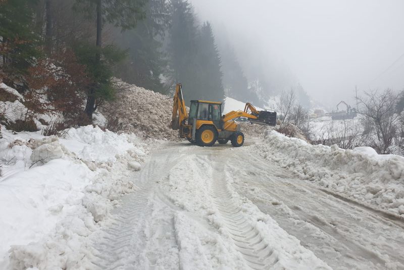Drumul de acces spre Valea Vinului din Bistrița-Năsăud, din nou blocat din cauza căderilor masive de zăpadă (FOTO)