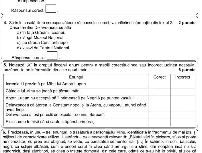 Evaluarea Națională 2022. Subiecte ROMÂNĂ Evaluare națională 2022. Potrivit subiectelor primite de elevi, textele suport, la prima vedere, au fost din „Toate pânzele sus”, de Radu Tudoran, și „Frânturi din viața lui Delavrancea”, de Cella Delavrancea. Pe baza acestora au fost câte 9 cerințe la primul text și 8 pentru al doilea.