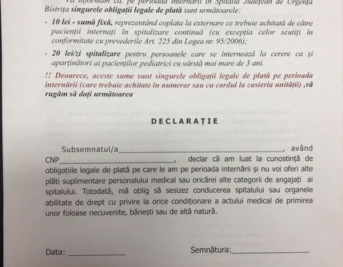 Managerul SJU Bistrița a mai completat că în ceea ce privește cazurile grave, în care actul medical este condiționat de anumite foloase materiale, acestea ar trebui sesizate din start, chiar la organele abilitate în acest sens, nu doar la conducerea unității medicale.