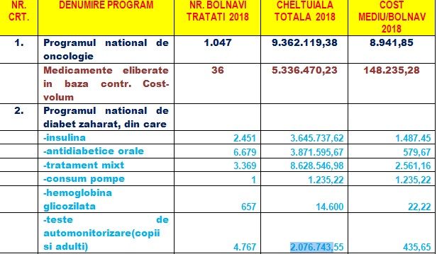 ”Bolile oncologice sunt printre cele mai costisitoare afecțiuni și pentru că sunt scumpe medicamentele și pentru că sunt tratamente de lungă durată și apar tot mai multe medicamente noi. Sigur că sunt mai bune, dar sunt și mai scumpe. La noi în județ cheltuiala a fost de 9.362.119 lei, în condițiile în care noi nu suntem un județ în care se fac toate tratamentele cum e Clujul sau Bucureștiul. La noi se aplică tratamentul când deja pacientul este oarecum stabilizat și este pe o linie”