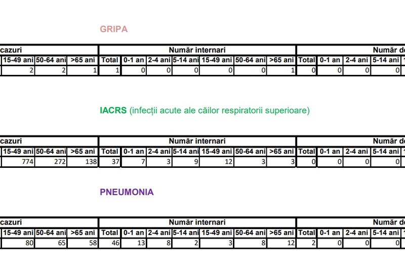 Potrivit informaţiilor date publicității de Direcţia de Sănătate Publică Bistrița-Năsăud, în intervalul 11-17 februarie, în judeţ au fost înregistrate aproape 300 de cazuri de pneumonie, cu aproape 50 de cazuri mai mult decât în intervalul 4 - 10 februarie. În ultima săptămână, 46 dintre pacienţii diagnosticați cu pneumonie au avut nevoie de spitalizare. Cu toate eforturile medicilor, doi dintre aceștia au decedat, ei provenind din grupele de vârstă 50 - 64 de ani și peste 65 de ani.De asemenea, în intervalul menționat, s-au înregistrat și șase noi cazuri de gripă, un singur pacient cu vârsta peste 65 de ani fiind internat în spital.În ceea ce priveşte infecţiile acute ale căilor respiratorii superioare, numărul acestora se menține ridicat, într-o singură săptămână, înregistrându-se aproape 2.500 de cazuri, cu 37 de internări. Cele mai multe viroze respiratorii au fost diagnosticate la grupele de vârstă 15 - 49 de ani și 5 - 14 ani.