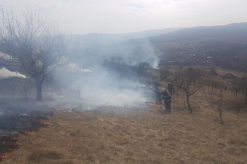 ncendiul de vegetație este localizat. Intervin pentru lichidarea acestuia cinci pompieri împreună cu opt localnici. Intervenția se face cu mijloace de primă intervenție deoarece incendiul se manifestă într-o zonă greu accesibilă și nu a fost posibil accesul autospecialei de intervenție