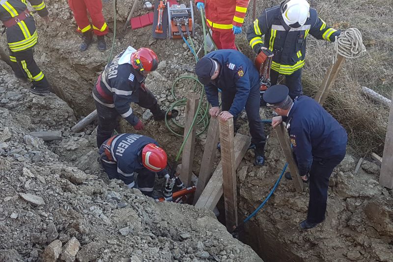După ce au fost stabilizate malurile șanțului cu accesoriile hidraulice, a fost îndepărtat cu grijă pământul din jurul victimei. Un aport enorm l-a avut fiul victimei, care a sprijinit intervenția din momentul 0 și până la final, lucrând în echipă cu echipajele de intervenție alocate la locul solicitării.[embed]https://www.facebook.com/442945469488809/videos/763610587310028/[/embed]Victima a fost extrasă după aproximativ 70 - 80 de minute și predată echipajului medical, în vederea stabilizării și transportului către UPU SMURD Bistrița.