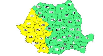 ”În intervalul menționat vor fi perioade cu instabilitate atmosferică accentuată în Banat, Crișana și local în Oltenia și vestul Transilvaniei. Aceasta se va manifesta prin averse ce vor avea și caracter torențial, frecvente descărcări electrice, vijelii și căderi de grindină. Cantitățile de apă vor depăși 20…25 l/mp și izolat 40…50 l/mp