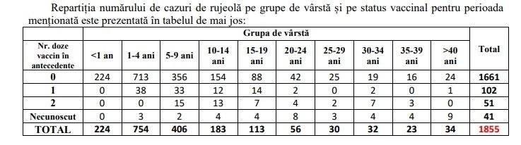 Numărul total de cazuri confirmate cu rujeolă în România raportate de la 01.01.2023 până la data de 30.11.2023 este 1855. S-au înregistrat cazuri de rujeolă în 29 de județe și în Municipiul București