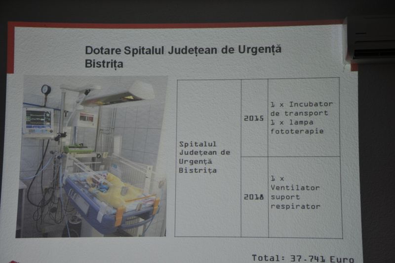 Președintele Fundației Salvați Copiii, Gabriela Alexandrescu, a declarat că aceasta este cea de-a doua donație către Spitalul Județean de Urgență Bistrița. În anul 2015, fundația a mai donat un incubator de transport și o lampă de fototerapie, care au ajuns tot la secția de Neonatologie, valoarea acestor aparate fiind de încă 14.000 de euro. În total, valoarea ambelor donații ajunge la circa 37.000 de euro.