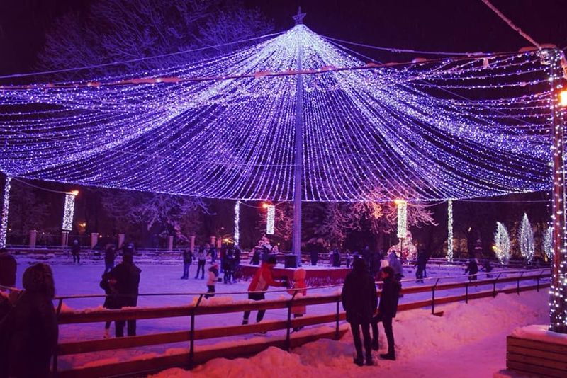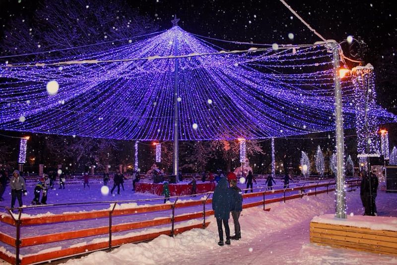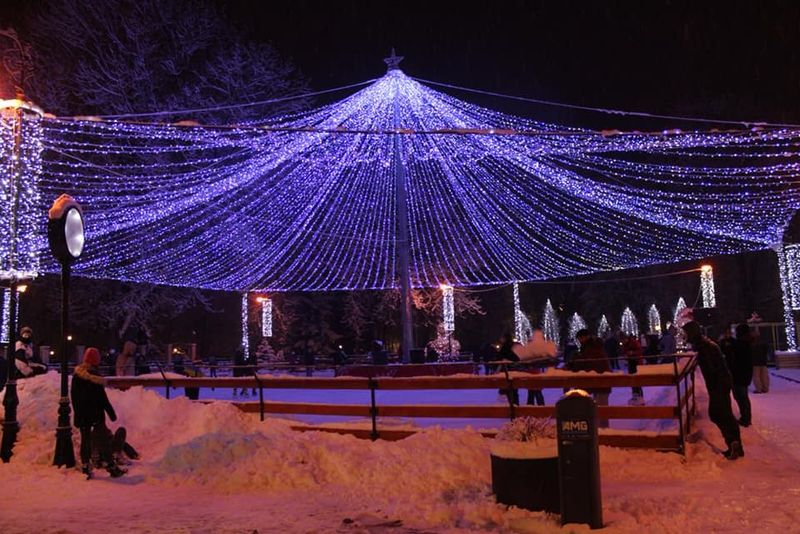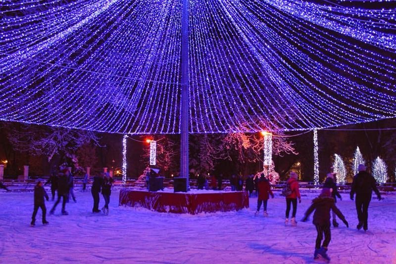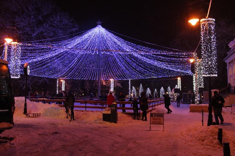 Patinoarul amenajat în fața Palatului Culturii din Bistrița, deschis (FOTO/VIDEO)