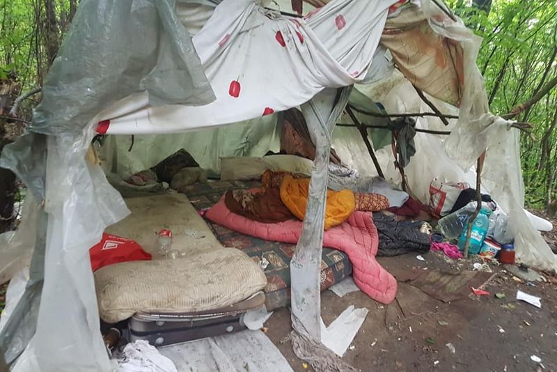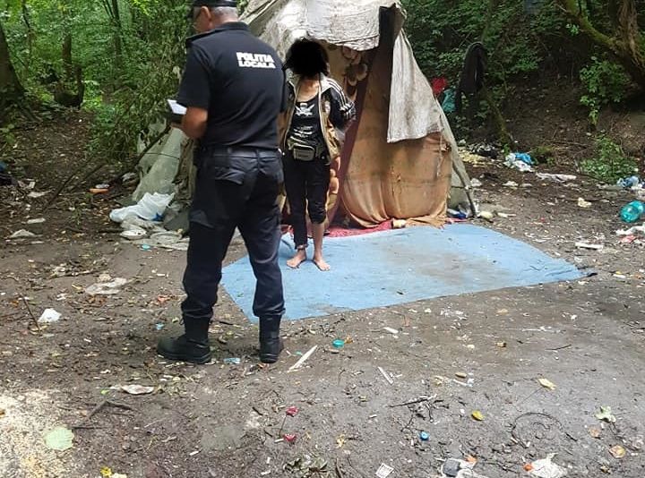 Polițiștii locali din Bistrița au depistat patru persoane care locuiau în corturi în Pădurea Codrișor (FOTO)