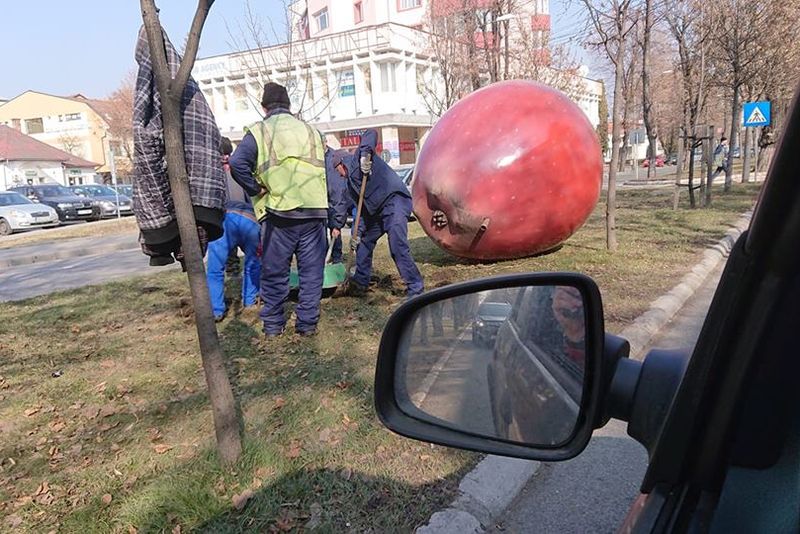 Primăria Bistrița, nevoită să mute merele gigant amplasate în apropierea unor treceri de pietoni (FOTO)