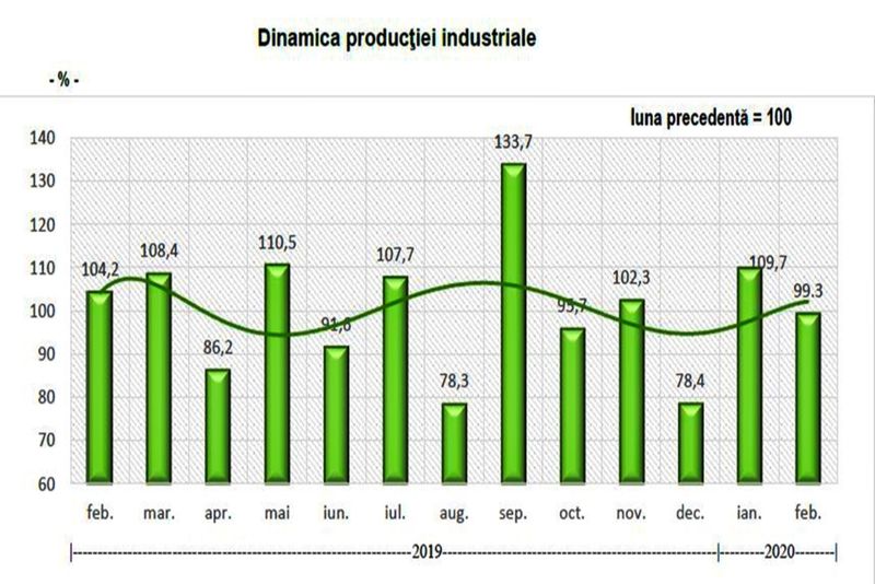 Producţia industrială a judeţului s-a situat în luna februarie 2020 cu 9,8% sub nivelul