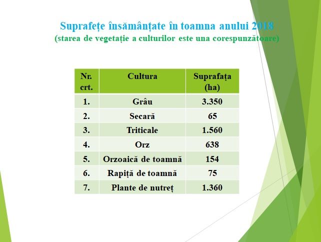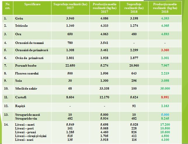Potrivit Direcției pentru Agricultură Bistrița-Năsăud, cea mai mare suprafață a fost însămânțară cu grâu.