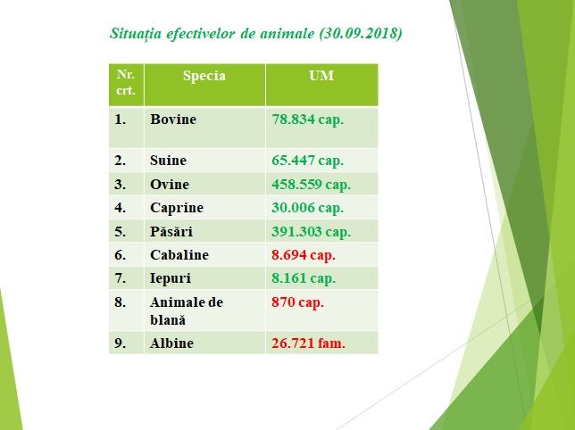 În ceea ce privește efectivele de animale, județul Bistrița-Năsăud stă cel mai bine la capitolul bovine.