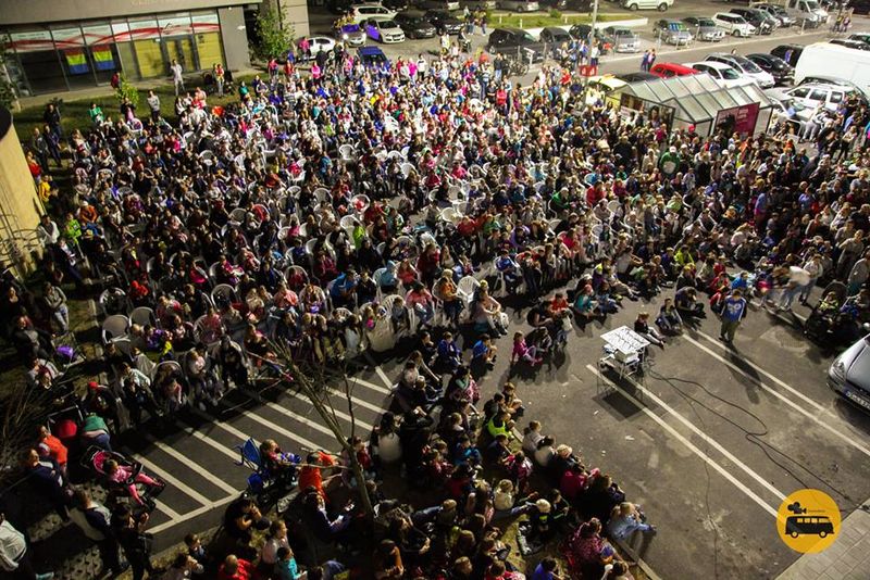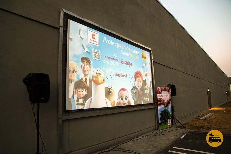 În parcarea magazinului Kaufland de pe Bulevardul Independenței din municipiul Bistrița s-au adunat aseară copii, tineri, adulți și chiar vârstnici, dornici să participe la o proiecție de film în aer liber.
