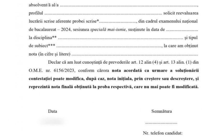 Cum se face contestație la BACALAUREAT 2024. Cum arată cererea pe care trebuie să o completeze elevii nemulțumiți de note