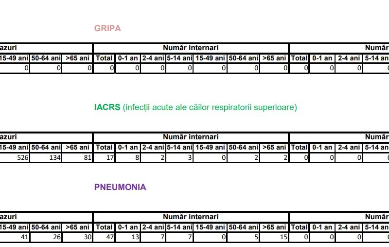 Potivit statisticilor întocmite de Direcția de Sănătate Bistrița-Năsăud, în prima săptămână a lunii octombrie, cele mai multe cazuri raportate au fost de infecții acute ale căilor respiratorii superioare (IACRS) - 2003 cazuri, dintre care 17 au necesitat internare într-o unitate spitalicească. Cele mai multe cazuri raportate au fost înregistrate la grupa de vârstă 5 - 14 ani (629), urmată de cea cu vârste între 15 - 49 de ani (526). Dintre persoanele internate, majoritatea au fost copii.De asemenea, au fost înregistrate şi 160 de pneumonii cu 47 de internări, majoritatea cazurilor la grupa de vârstă > 65 de ani (30 de cazuri). Cele mai multe internări au provenit tot din rândul persoanelor vârstnice - 15 cazuri.În schimb, în intervalul analizat nu a fost înregistrat niciun caz de gripă în Bistrița-Năsăud.