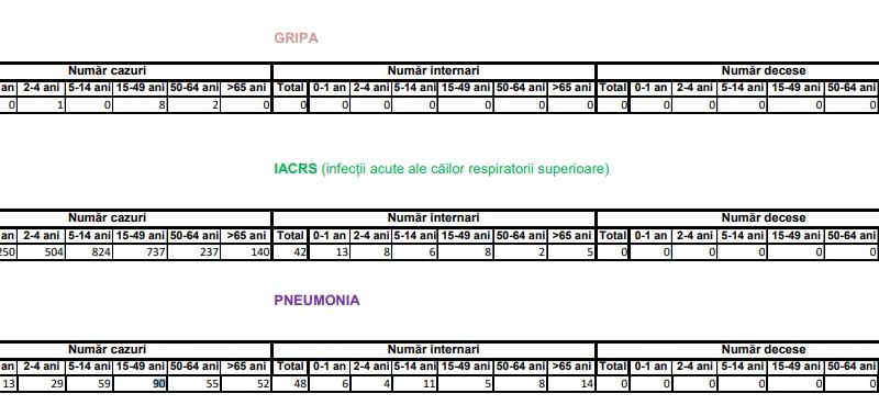 Potrivit ultimelor raportări date publicității de Direcția de Sănătate Publică Bistrița-Năsăud, în intervalul 21 - 27 ianuarie au mai fost înregistrate încă aproximativ 2.700 de cazuri de infecții acute ale căilor respiratorii superioare, majoritatea îmbolnăvirilor (824) afectând copiii din grupa de vârstă 5 - 14 ani. 42 persoane au avut nevoie de internare.Totodată, în perioada menționată s-au mai înregistrat și aproape 300 de cazuri de pneumonii, cele mai multe (90) la grupa de vârstă 15 - 49 de ani. 49 de persoane au avut nevoie de îngirijire medicală într-o unitate spitalicească.În tot acest interval nu a fost înregistrat niciun deces.