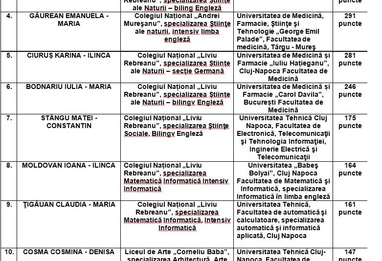”Având în vedere faptul că elevul Petruşca Sergiu a obţinut medalia de aur la Olimpiada Internațională de Știință pentru Juniori, decembrie 2016, Bali, Indonezia, acesta va primi Bursa de Merit „Nosa” din oficiu. Pe baza clasamentului, beneficiarii celor două Burse de Merit „Nosa” sunt elevii: Deac Alex-Claudiu, absolvent al Colegiului Naţional „Liviu Rebreanu”, student în anul I la University of Manchester, Anglia, care a totalizat 361 de puncte și Cătinean Sonia Claudia, absolventă a Colegiului Naţional „Liviu Rebreanu”, studentă în anul I la NYU Abu Dhabi, care a obţinut 321 de puncte”, se arată în motivarea proiectului de hotărâre care va fi dezbătut în ședința ordinară a Consiliului Local Bistrița din această lună.