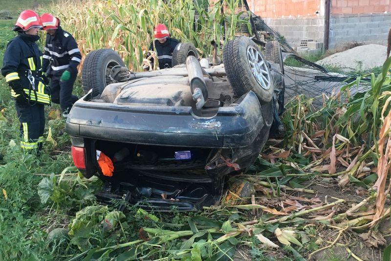 Șoferul unui autoturism a tras o sperietură zdravănă și s-a ales și cu răni, după ce nu a adaptat viteza la condițiile de drum, a ieșit cu mașina în afara părții carosabile unde s-a răsturnat.