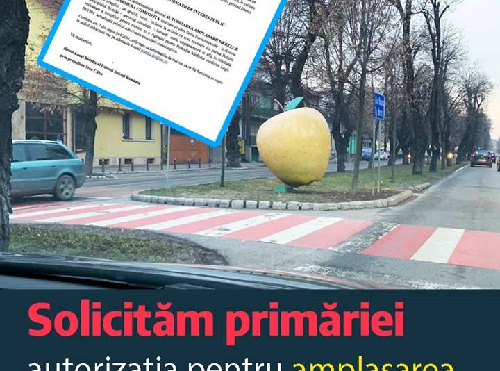 Reprezentanții Uniunii Salvați România Bistrița vor să știe dacă administrația locală a respectat toți pașii legali și a obținut toate avizele necesare pentru a putea amplasa în diverse zone din oraș mere gigant din fibră de sticlă. În acest sens, cei din USR au depus o solicitare către Primăria Bistrița, iar în baza legii privind liberul acces la informații publice cer furnizarea acestor informații.