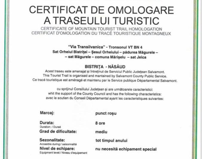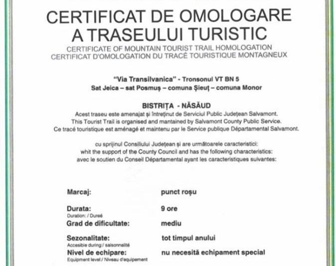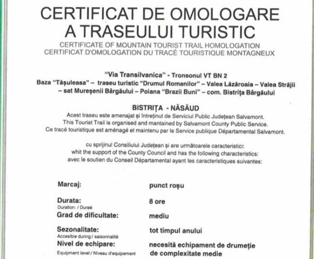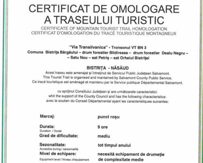 O porțiune importantă a traseului Via Transilvanica a primit omologare oficială din partea Ministerului Turismului. Astfel, traseul care traversează județul Bistrița-Năsăud este, potrivit președintelui Consiliului Județean Bistrița-Năsăud, Emil Radu Moldovan, și primul din România omologat oficial de Ministerul Turismului.