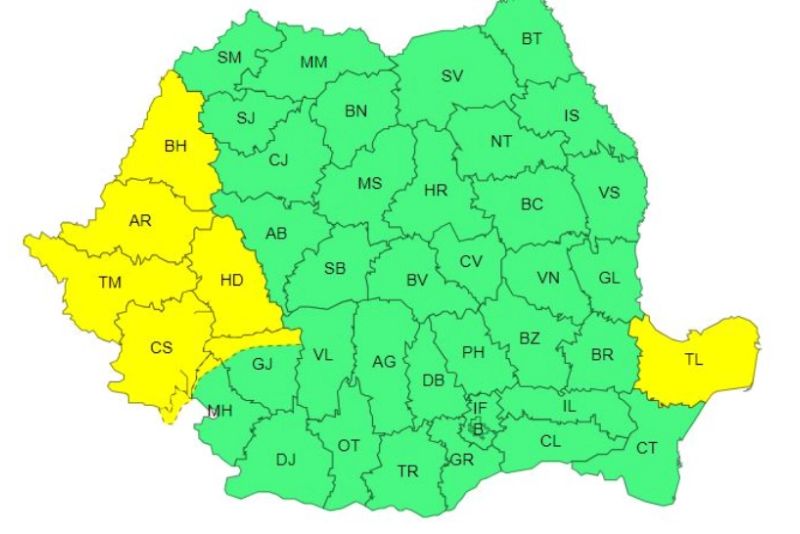 În Banat, Crișana, sud-vestul Transilvaniei, local zona de munte a Olteniei, nordul Dobrogei vor cădea între 30 și 40 de litri de apă pe metru pătrat, conform alertei ANM.