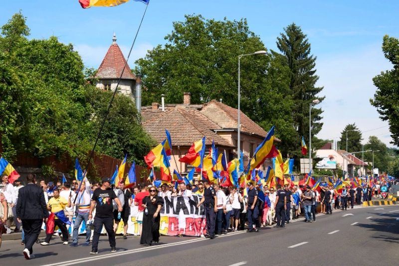 Mii de români cu steaguri tricolore s-au adunat sâmbătă la Târgu Mureș pentru a celebra Drapelul Național, simbol al libertății, identității și jertfei strămoșilor pentru națiunea română.Evenimentul a reunit oameni veniți din toate colțurile țării, îmbrăcați în straie naționale, care au pornit într-un marș cu steaguri tricolore și au scandat mesaje de unitate națională, alături de președintele AUR, George Simion.