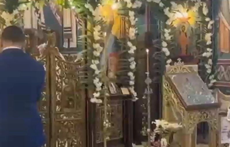 Liderul AUR, George Simion, a mers la biserică după vot. Cei doi s-au recules în lăcașul de cult, unde s-au rugat alături de oamenii prezenți la slujbă.